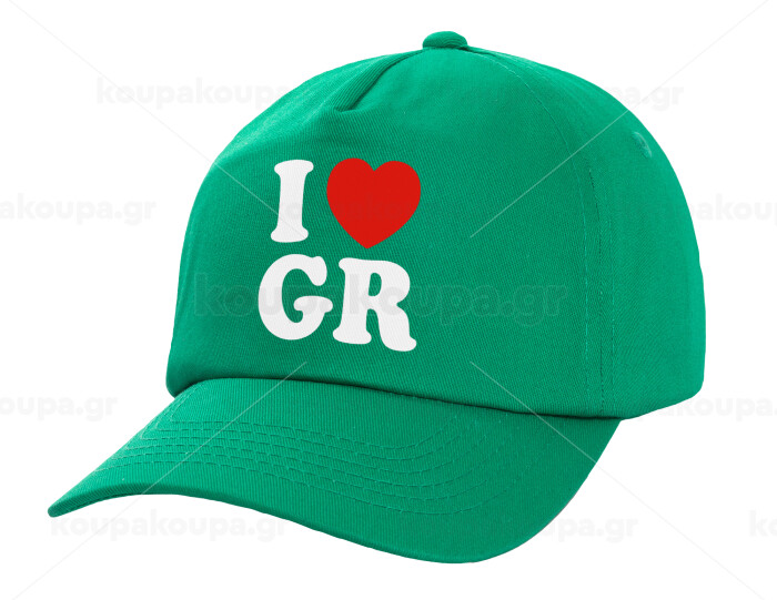 I Love GR, Adult Baseball Cap, 100% Cotton, Green (COTTON, ADULT, UNISEX, ONE SIZE)
