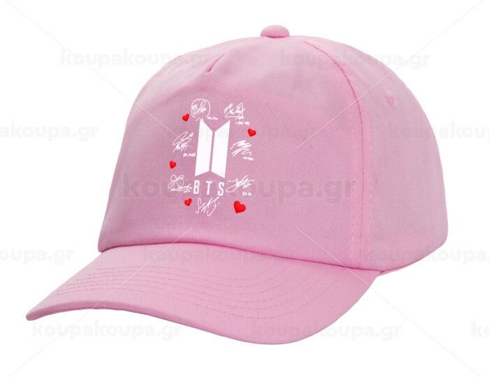 BTS signs, Adult Baseball Cap, 100% Cotton, PINK (COTTON, ADULT, UNISEX, ONE SIZE)