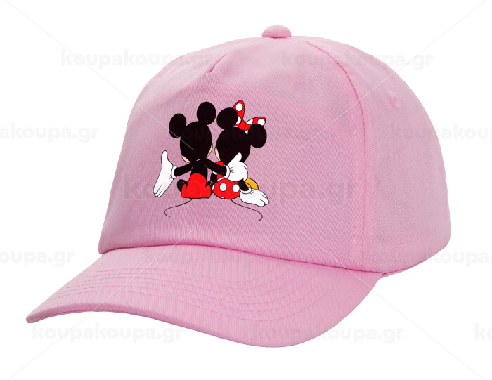 mickey and minnie hags, Adult Baseball Cap, 100% Cotton, PINK (COTTON, ADULT, UNISEX, ONE SIZE)