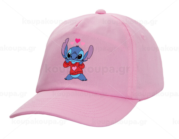 Stitch heart, Adult Baseball Cap, 100% Cotton, PINK (COTTON, ADULT, UNISEX, ONE SIZE)