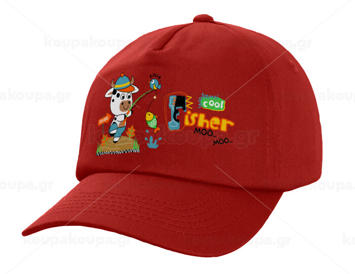 Kids Fisherman, Adult Baseball Cap, 100% Cotton, Red (COTTON, ADULT, UNISEX, ONE SIZE)
