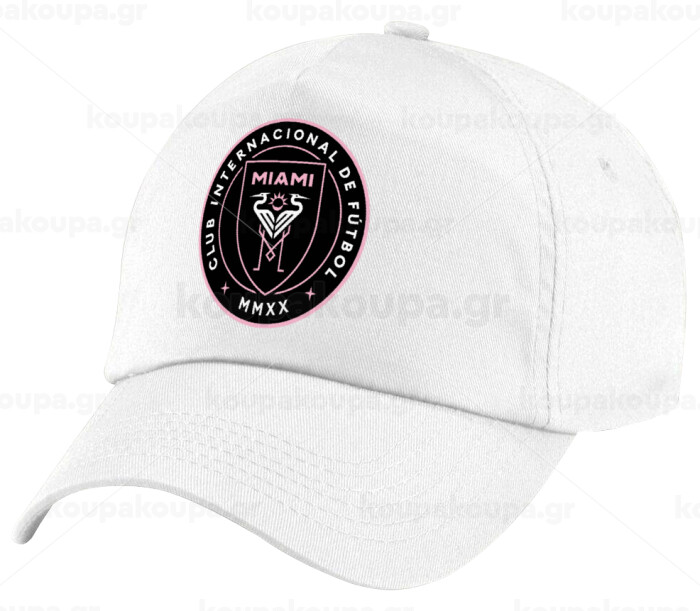 Inter Miami CF, 5-Panel Cap White, 100% Cotton (Twill), (UNISEX, ONE SIZE)