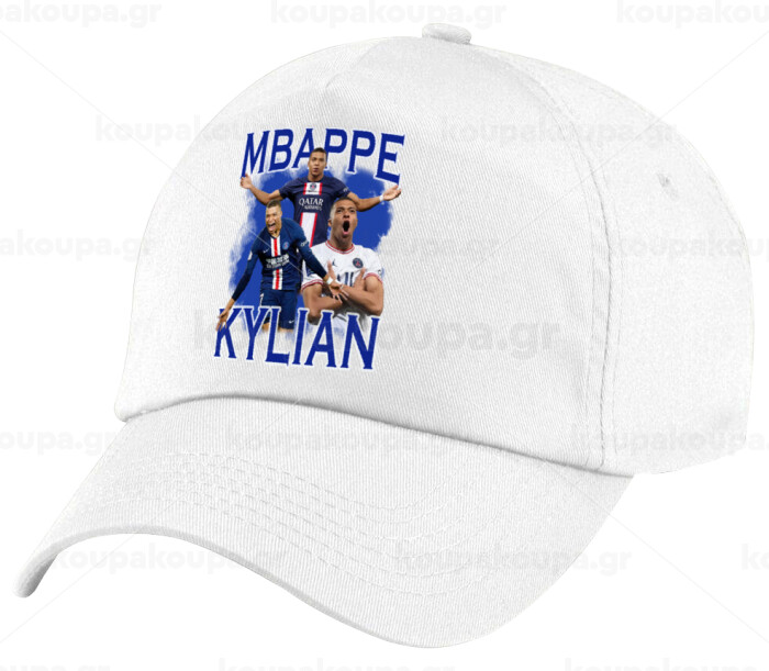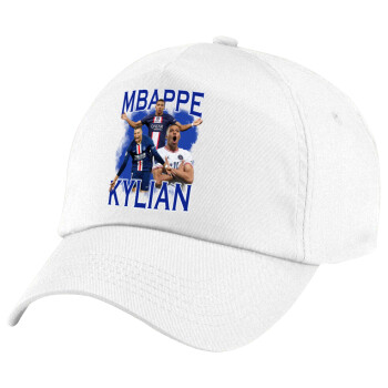 Kylian Mbappé, 5-Panel Cap White, 100% Cotton (Twill), (UNISEX, ONE SIZE)