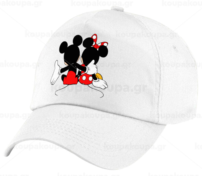 mickey and minnie hags, 5-Panel Cap White, 100% Cotton (Twill), (UNISEX, ONE SIZE)