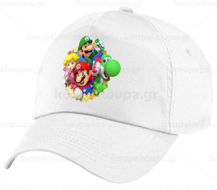 Super mario and Friends, 5-Panel Cap White, 100% Cotton (Twill), (UNISEX, ONE SIZE)