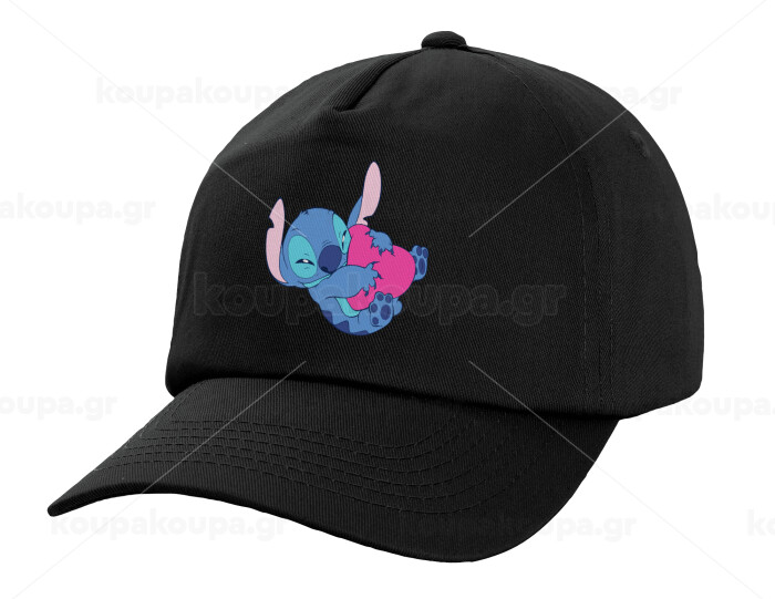 Lilo & Stitch hugs and hearts, Adult Baseball Cap, 100% Cotton, Black (COTTON, ADULT, UNISEX, ONE SIZE)