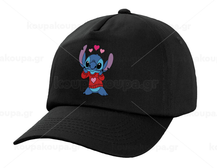 Stitch heart, Adult Baseball Cap, 100% Cotton, Black (COTTON, ADULT, UNISEX, ONE SIZE)
