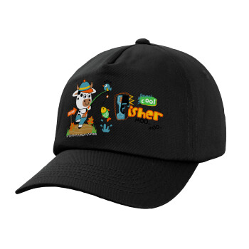 Kids Fisherman, Adult Baseball Cap, 100% Cotton, Black (COTTON, ADULT, UNISEX, ONE SIZE)