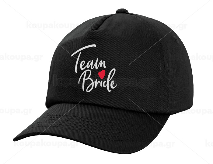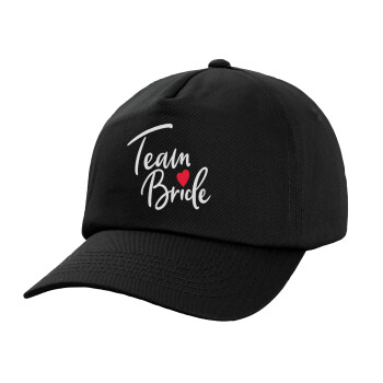 Team Bride red heart, Adult Baseball Cap, 100% Cotton, Black (COTTON, ADULT, UNISEX, ONE SIZE)