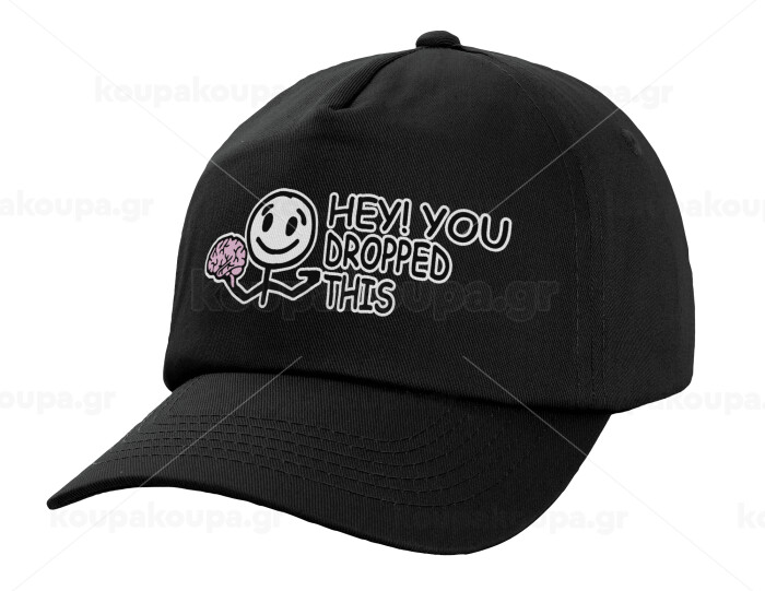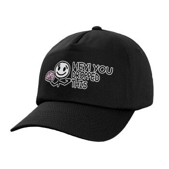 Hey! You dropped this, Adult Baseball Cap, 100% Cotton, Black (COTTON, ADULT, UNISEX, ONE SIZE)