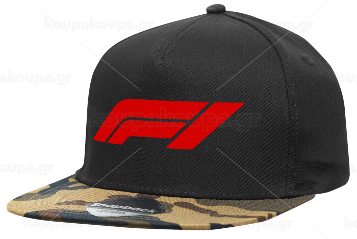Formula 1, Adult Flat Snapback Hat Black/Camouflage, (100% COTTON TWILL, ADULT, UNISEX, ONE SIZE)