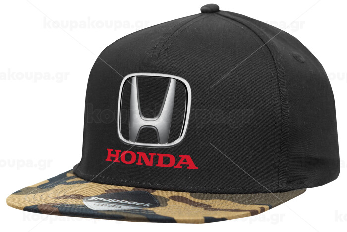 HONDA, Adult Flat Snapback Hat Black/Camouflage, (100% COTTON TWILL, ADULT, UNISEX, ONE SIZE)