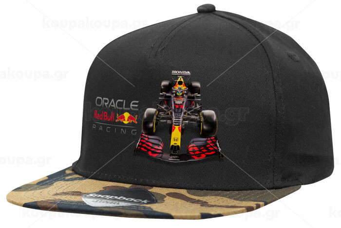 Redbull Racing Team F1, Adult Flat Snapback Hat Black/Camouflage, (100% COTTON TWILL, ADULT, UNISEX, ONE SIZE)