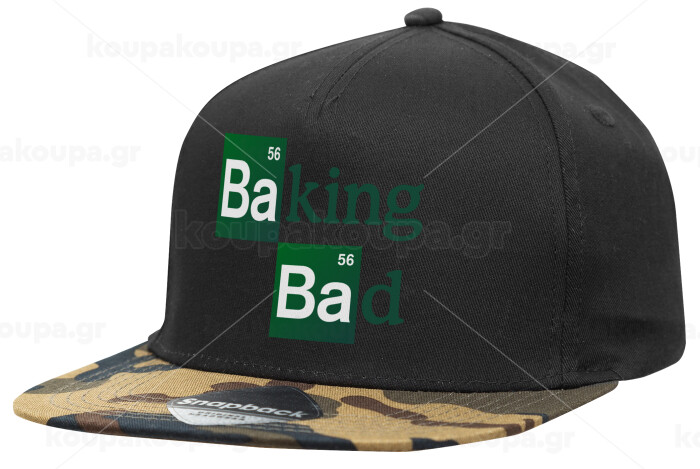 Baking Bad, Adult Flat Snapback Hat Black/Camouflage, (100% COTTON TWILL, ADULT, UNISEX, ONE SIZE)