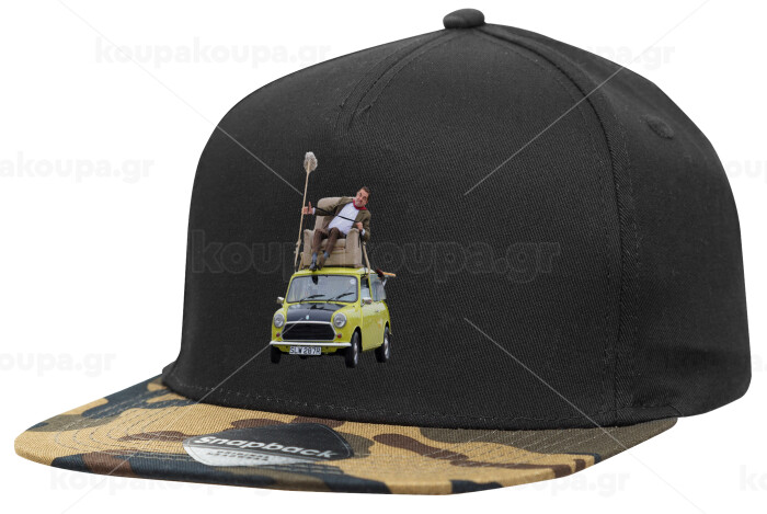Mr. Bean mini 1000, Adult Flat Snapback Hat Black/Camouflage, (100% COTTON TWILL, ADULT, UNISEX, ONE SIZE)