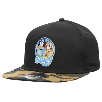 Μπλε, Adult Flat Snapback Hat Black/Camouflage, (100% COTTON TWILL, ADULT, UNISEX, ONE SIZE)