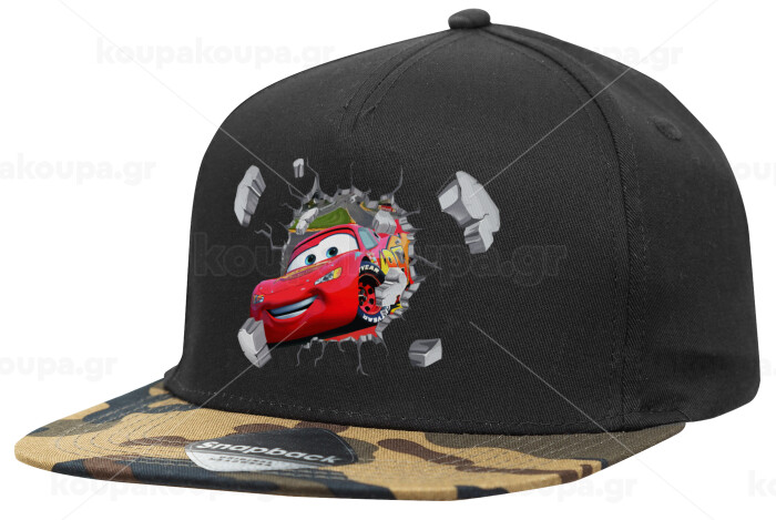 Brick McQueen, Adult Flat Snapback Hat Black/Camouflage, (100% COTTON TWILL, ADULT, UNISEX, ONE SIZE)