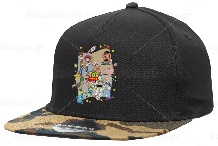 toystory characters, Adult Flat Snapback Hat Black/Camouflage, (100% COTTON TWILL, ADULT, UNISEX, ONE SIZE)