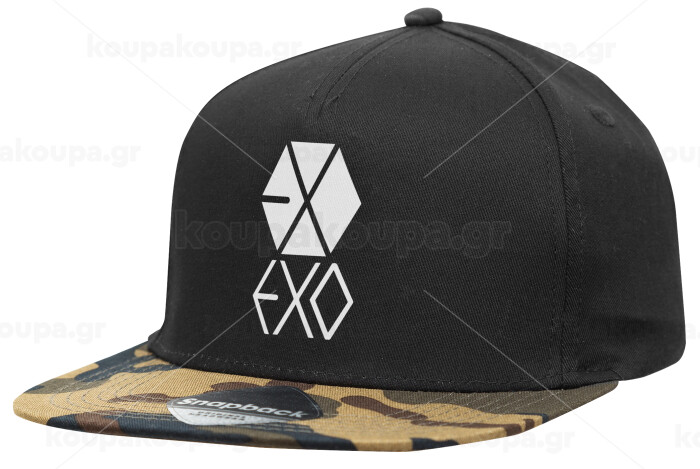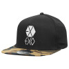 EXO Band korea, Adult Flat Snapback Hat Black/Camouflage, (100% COTTON TWILL, ADULT, UNISEX, ONE SIZE)