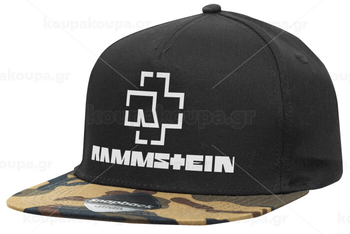 Rammstein, Adult Flat Snapback Hat Black/Camouflage, (100% COTTON TWILL, ADULT, UNISEX, ONE SIZE)