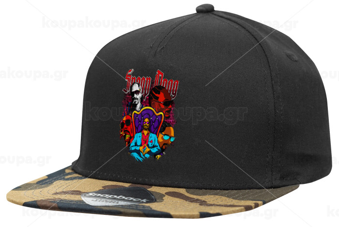 Snoop Dogg, Adult Flat Snapback Hat Black/Camouflage, (100% COTTON TWILL, ADULT, UNISEX, ONE SIZE)
