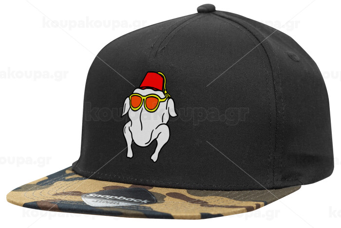 Friends turkey, Adult Flat Snapback Hat Black/Camouflage, (100% COTTON TWILL, ADULT, UNISEX, ONE SIZE)
