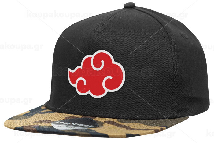 Naruto Akatsuki Cloud, Adult Flat Snapback Hat Black/Camouflage, (100% COTTON TWILL, ADULT, UNISEX, ONE SIZE)