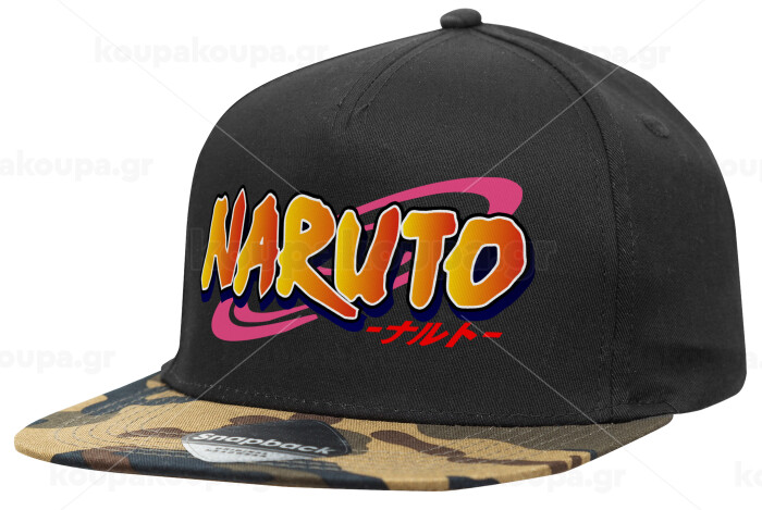 Naruto uzumaki, Adult Flat Snapback Hat Black/Camouflage, (100% COTTON TWILL, ADULT, UNISEX, ONE SIZE)