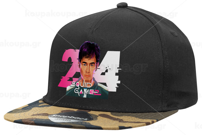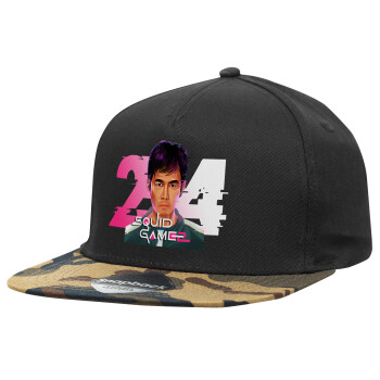 Squid game 456 Gi-Hun, Adult Flat Snapback Hat Black/Camouflage, (100% COTTON TWILL, ADULT, UNISEX, ONE SIZE)