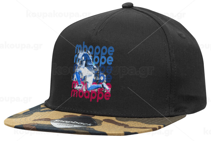 Kylian Mbappé, Adult Flat Snapback Hat Black/Camouflage, (100% COTTON TWILL, ADULT, UNISEX, ONE SIZE)