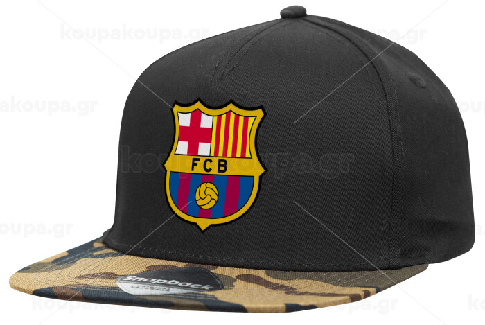 Barcelona FC, Adult Flat Snapback Hat Black/Camouflage, (100% COTTON TWILL, ADULT, UNISEX, ONE SIZE)