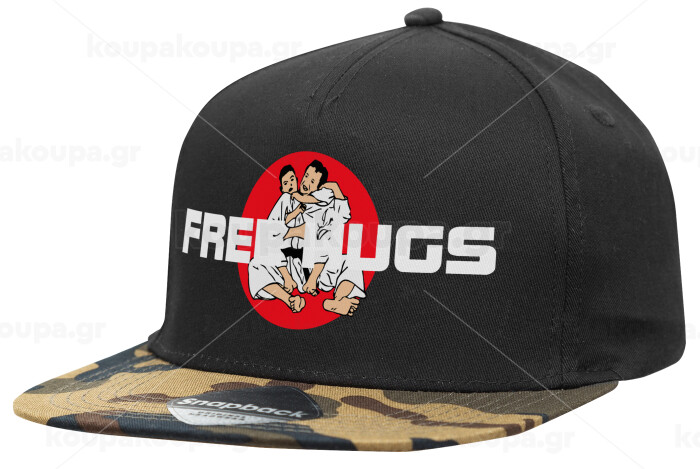 JUDO free hugs, Adult Flat Snapback Hat Black/Camouflage, (100% COTTON TWILL, ADULT, UNISEX, ONE SIZE)