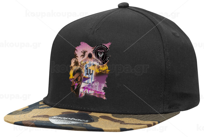 Lionel Messi Miami, Adult Flat Snapback Hat Black/Camouflage, (100% COTTON TWILL, ADULT, UNISEX, ONE SIZE)