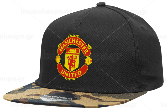 Manchester United F.C., Adult Flat Snapback Hat Black/Camouflage, (100% COTTON TWILL, ADULT, UNISEX, ONE SIZE)