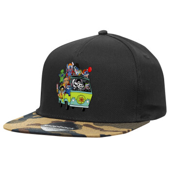 Stitch Halloween scooby car, Adult Flat Snapback Hat Black/Camouflage, (100% COTTON TWILL, ADULT, UNISEX, ONE SIZE)