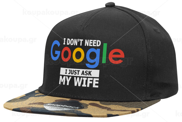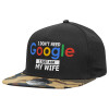 I don't need Google, just ask my WIFE, Adult Flat Snapback Hat Black/Camouflage, (100% COTTON TWILL, ADULT, UNISEX, ONE SIZE)