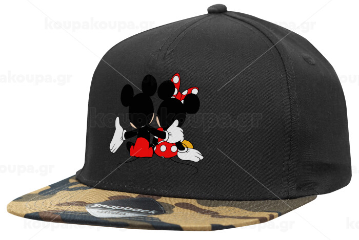 mickey and minnie hags, Adult Flat Snapback Hat Black/Camouflage, (100% COTTON TWILL, ADULT, UNISEX, ONE SIZE)