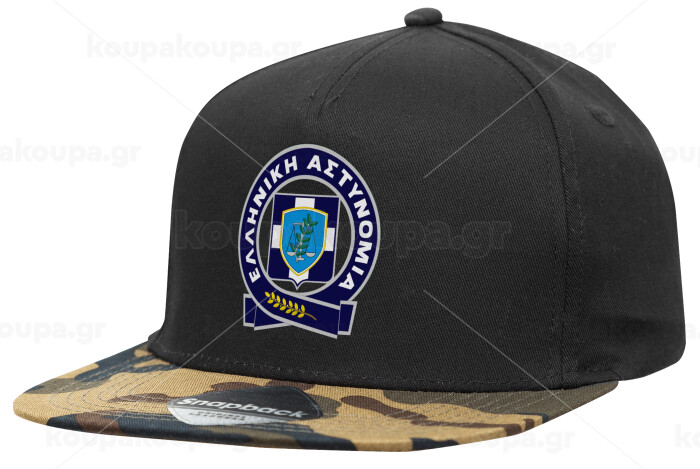 Ελληνική Αστυνομία, Adult Flat Snapback Hat Black/Camouflage, (100% COTTON TWILL, ADULT, UNISEX, ONE SIZE)