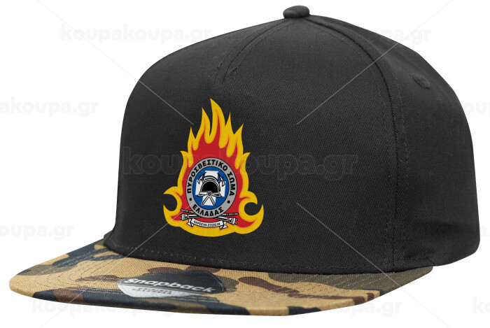Πυροσβεστικό σώμα Ελλάδος σκούρο, Adult Flat Snapback Hat Black/Camouflage, (100% COTTON TWILL, ADULT, UNISEX, ONE SIZE)