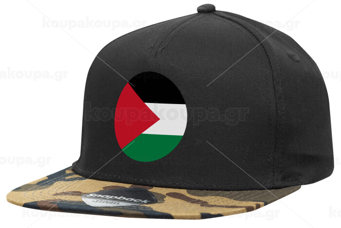 Palestine Flag, Adult Flat Snapback Hat Black/Camouflage, (100% COTTON TWILL, ADULT, UNISEX, ONE SIZE)