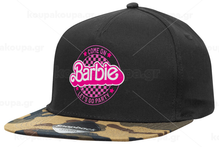 Come On Barbie Lets Go Party , Adult Flat Snapback Hat Black/Camouflage, (100% COTTON TWILL, ADULT, UNISEX, ONE SIZE)