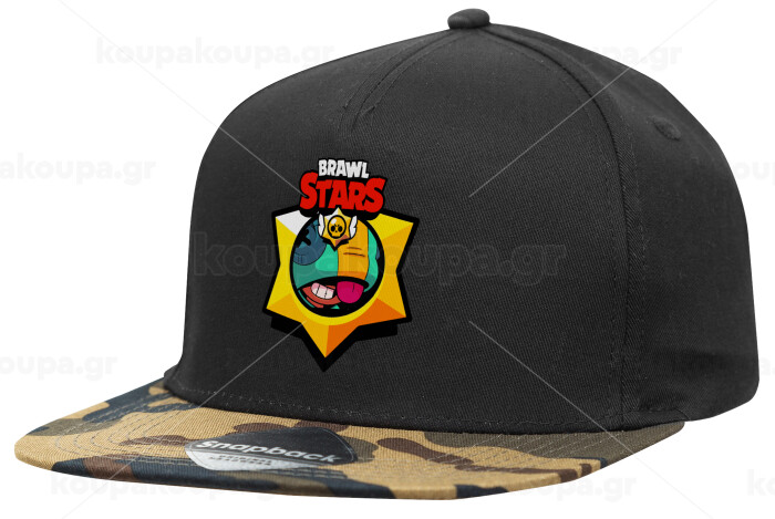 Brawl Stars Leon, Adult Flat Snapback Hat Black/Camouflage, (100% COTTON TWILL, ADULT, UNISEX, ONE SIZE)
