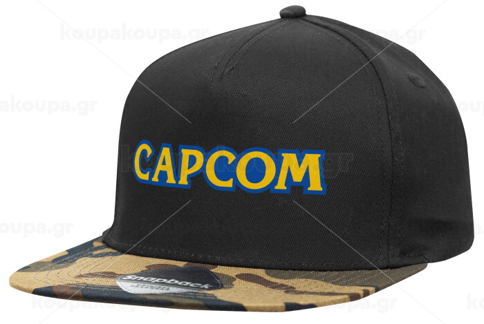 Capcom, Adult Flat Snapback Hat Black/Camouflage, (100% COTTON TWILL, ADULT, UNISEX, ONE SIZE)