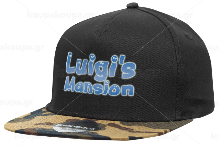 Luigi's Mansion, Adult Flat Snapback Hat Black/Camouflage, (100% COTTON TWILL, ADULT, UNISEX, ONE SIZE)