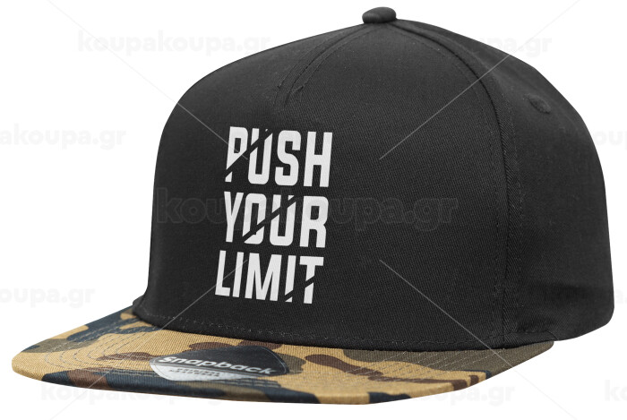 Push your limit, Adult Flat Snapback Hat Black/Camouflage, (100% COTTON TWILL, ADULT, UNISEX, ONE SIZE)