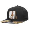 Tung Tung Tung Sahur, Adult Flat Snapback Hat Black/Camouflage, (100% COTTON TWILL, ADULT, UNISEX, ONE SIZE)