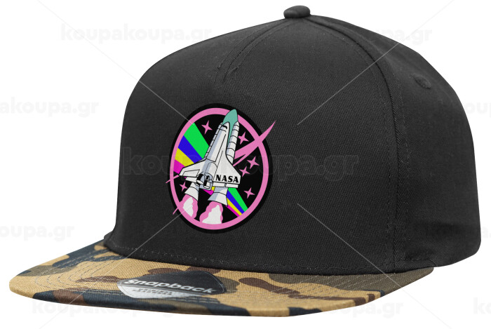 NASA pink, Adult Flat Snapback Hat Black/Camouflage, (100% COTTON TWILL, ADULT, UNISEX, ONE SIZE)