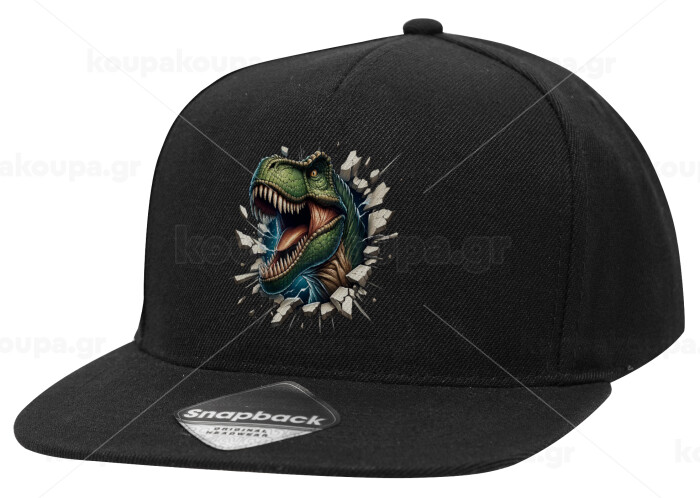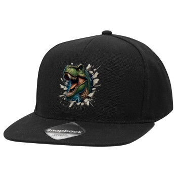 Dinosaur break wall, Adult Flat Snapback Hat Black, (100% COTTON TWILL, ADULT, UNISEX, ONE SIZE)