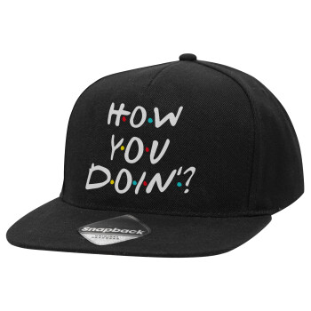 Friends How You Doin'?, Adult Flat Snapback Hat Black, (100% COTTON TWILL, ADULT, UNISEX, ONE SIZE)