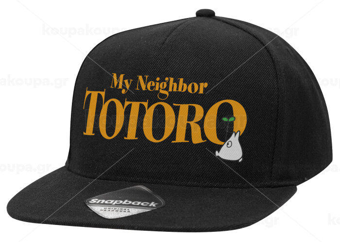 Totoro and Cat, Adult Flat Snapback Hat Black, (100% COTTON TWILL, ADULT, UNISEX, ONE SIZE)